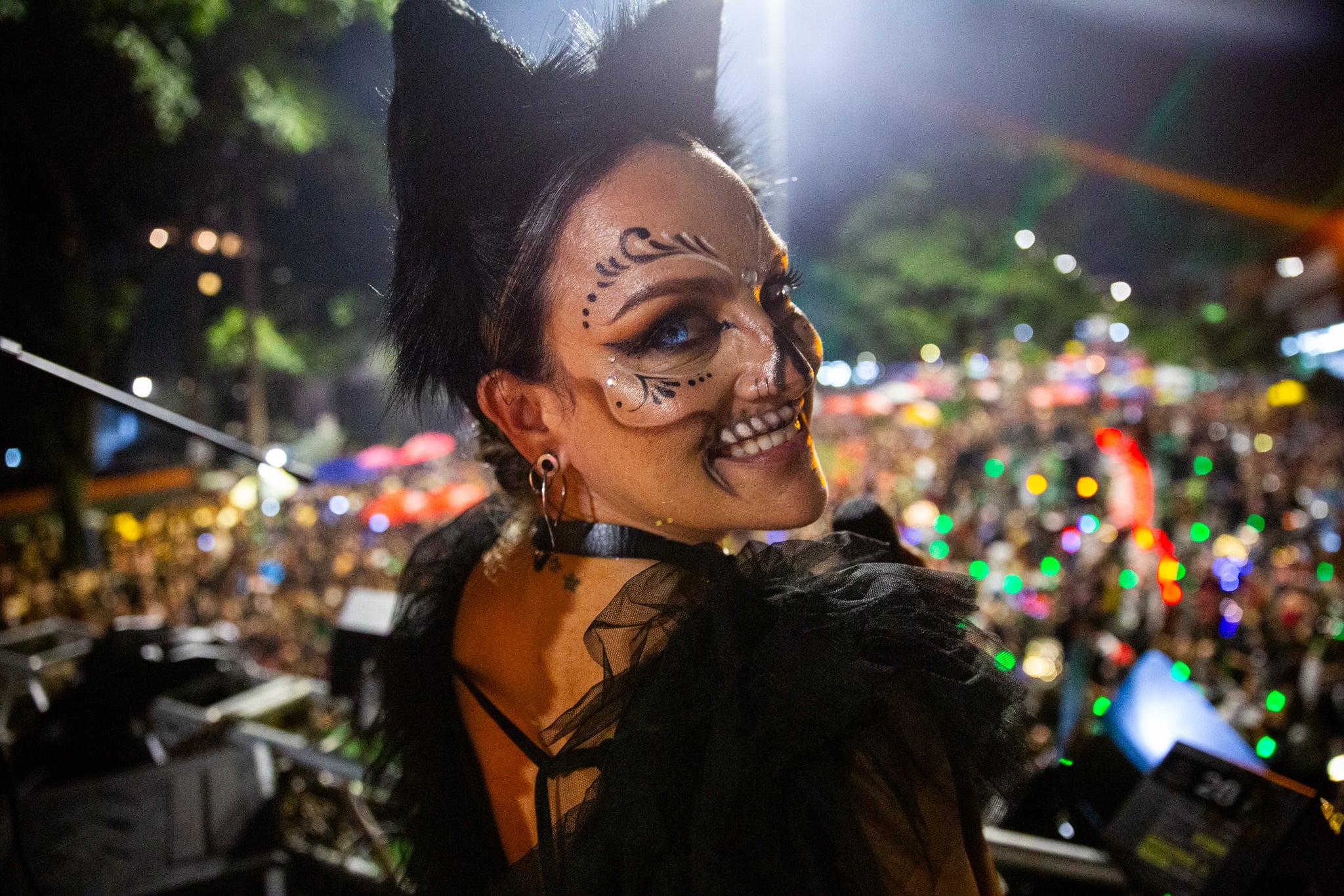 A proposta do bloco foi convidar o público a brincar com as superstições brasileiras, a iconografia do terror clássico, os símbolos de azar e os pequenos rituais de proteção. Tudo isso filtrado pela lógica do Carnaval, onde o susto vira piada, a tensão vira dança e o coletivo vira refúgio. Uma experiência única e memorável!